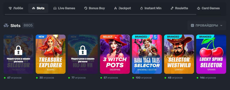 Каталог платформы содержит 7000+ игровых автоматов от 85 провайдеров. Контент поставляют компании с лицензиями Malta Gaming Authority и UK Gambling Commission: Pragmatic Play, NetEnt, Microgaming, Evolution Gaming, Yggdrasil, Play’n GO. Игроки могут начать играть в казино Селектор на реальные деньги в России сразу после пополнения баланса.